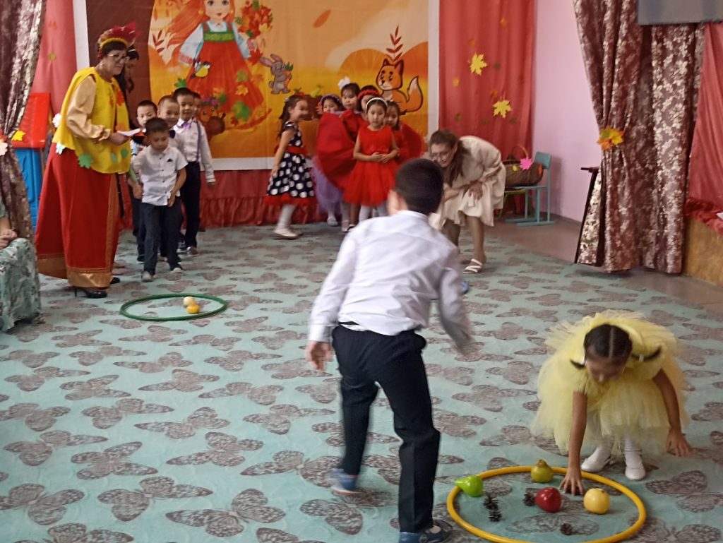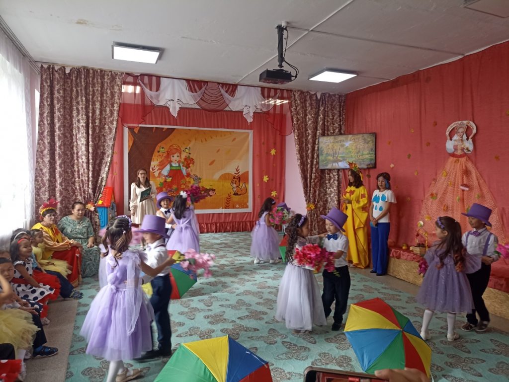Традиционно, в октябре, в нашем детском саду проходят осенние праздники. У детей всех групп прошел осенний утренник. На дворе пасмурно и холодно, не хватает солнечного тепла, а у нас в музыкальном зале царила теплая, доброжелательная атмосфера. В гости к ребятам пришла Капелька, гриб Боровик, с которыми они сумели подружиться. И сама осень-красавица заглянула к нам на праздник, принесла гостинцы: яблоки. Дети с нетерпением ждали встречи с осенью. Вместе с Осенью воспитанники отправились в увлекательное путешествие в осенний лес и на огород.